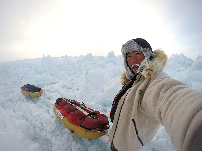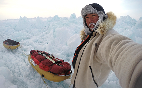 そんな北極冒険の歴史において、またひとつ新たなページを記そうとしている日本の冒険家がいる。2000年、ごくごく普通の大学生にすぎなかった青年は、冒険家・大場満郎氏が企画した「北磁極を目指す冒険ウォーク」に参加したことをきっかけに、彼の地に魅せられ、北極行にのめり込んで行った。