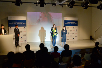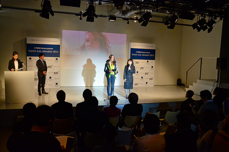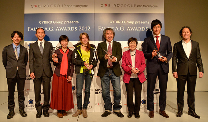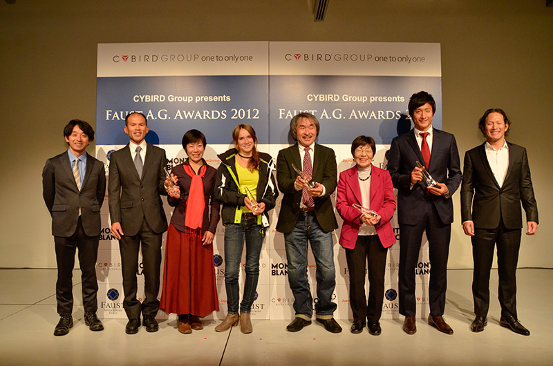 Laura and the other award winners at the awards ceremony. From left: Mr. Ukyo Katayama (presenter); Alpine climbers Mr. Kazuya Hiraide and Ms. Kei Taniguchi; Laura; Adventurer Mr. Shinji Kazama; Mountaineer Ms. Junko Tabei; Soccer pro Mr. Ken Tokura of Vissel Kobe; and Awards promoter Mr. Kazutomo Robert Hori, CEO of Cybird Holdings. Pictures from the award ceremony can be found at the following link: http://www.faust-ag.jp/quest/quest027/
