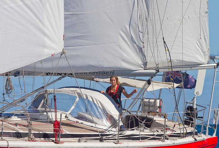 Laura's vitality was put to good use on her trip around the world. "I went around to a lot of companies, gave presentations about my voyage, and many became my sponsors. I did it in the Netherlands before I left, and also at a number of ports of call during my trip around the world. Even so, my budget was limited, so I couldn't spend a lot of money. When you enter a marina you can use the water and electricity, but you are usually charged a harbor fee, so I anchored off shore most of the time. For instance French Micronesia is very expensive, so I just ate baguettes and cheese. When going through the Panama Canal, the transit toll alone cost a fortune; but I also had some damage to my yacht, and had to buy parts too. So for several days while I waited for permission to transit the Canal, I earned funds by giving presentations there."