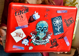 "All the movies and pics from my travels so far are stored here. I painted the inside casing panel myself."