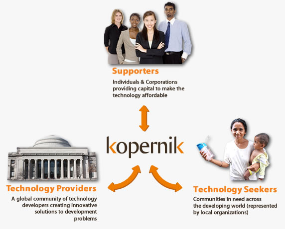 Kopernik connects three critical elements using the internet: local NPOs and similar organizations in developing countries, the businesses and universities that have technology that can be used by the developing world, and the people who make donations to make it happen. Kopernik’s web site makes it easy to see all of the different projects currently underway and instantly see the fundraising status for each project. The technologies are brought directly to local organizations, meaning that donations go directly to where they are needed rather than passing through an intermediary.