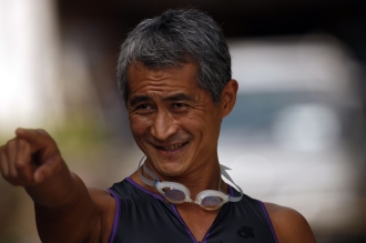 F そうそう、トライアスロンって、たいていグループで練習するんですよ。僕はグループに入らない。入るのがイヤとかじゃなくて、ひとりでやっているほうが好きなんです。今年はずっとそうだったんで、色々とお誘いをいただいているんですけど、練習もひとりでやるほうがいいんです。でも、プログラムを作ってみんなでやったほうがいいらしいですね。白戸さんにたまにメールをして、練習メニューを教えてもらったりはしているんですが。