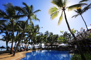 ビジネスユースにも完璧に対応している。客室はもちろん、ロビーやビーチでも無線LANでネットにアクセスできる。また、シアタースタイルで最大80人を収容する会議場や、定員12名のミーティングルーム、通信環境の整ったライブラリーもある。ライブラリーには日本語のDVDと本も用意されている。