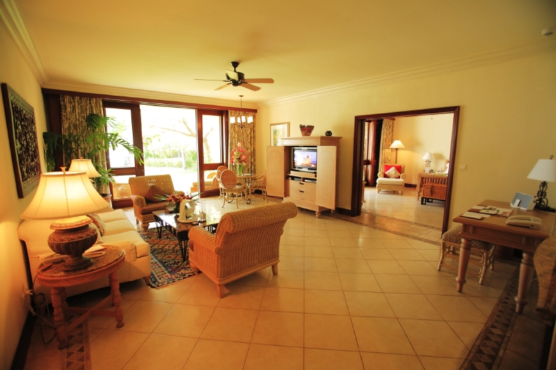 すべてのスイートはバルコニーまたはテラス付きで、テラスにはハンモックも。室内には洗面台が2つ、シャワーブースと大型のバスタブが寛ぎの時間を提供してくれる。ジュニアスイート(キングサイズベットのタイプ)の約2倍の広さがあるオーシャンスイートには、ゆったりとしたサイズのソファーとダイニングテーブル。オーシャンスイートの何部屋かは、ジュニアスイートとのコネクティングルームとして利用できるようになっている。