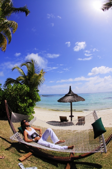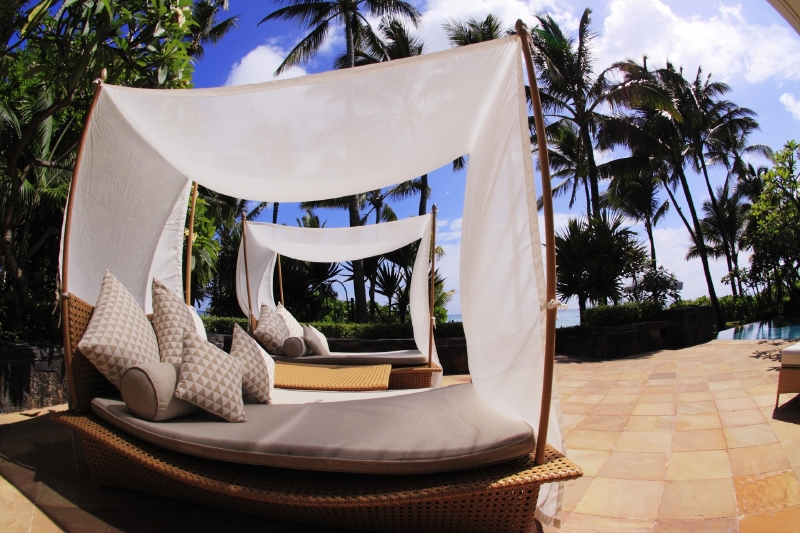 リビング・ダイニング前のテラスには、バーベキュー用のスペースもある。インド洋に沈むサンセットを楽しみながら、シーフードと白ワインのマリアージュに身を委ねるもいいだろう。 テラスにはジャグジー付きのプライベートプールもある。また、カーテン付きの四柱式ベッドやハンモックがあり、日差しを自由にコントロールできる。波の音をBGMに読書をするならベッドで、思い切り日差しを浴びたければハンモックでと、その日の過ごし方によって使い分けたい。