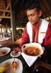 朝食は50種類以上のメニューが揃うビッフェで。あらかじめリクエストをしておけば、ビーチサイドで食事をすることもできる。