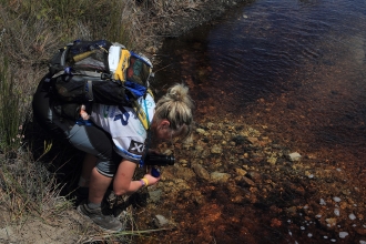 CP47でトレッキングセクションに移った3人は素晴らしいタスマニアの景色を堪能しながら移動していた。足裏にひびく岩場が続き、どうしてもペースは落ちる。それでも時折小澤の楽しそうな甲高い笑い声が山々に響く。ナディにも笑顔が戻っていた。