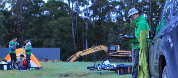 「日本で応援してくれている仲間がいる。なんとしてもゴールしたい」という強い思いで再びモチベーションを奮起させ、CP41からCP47を目指してMTBで移動した。その晩はCP47でキャンプ。翌朝、テントから出てきた彼らの表情にはどこか吹っ切れた感じがあった。その様子を一歩離れたところから見つめる重鎮の姿があった。