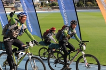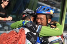 ついに到達した最後のCP52で、南と小澤とナディは、拳と拳とを突き合わせた。これが最後のCPという気合。最終セクションはMTBだ。