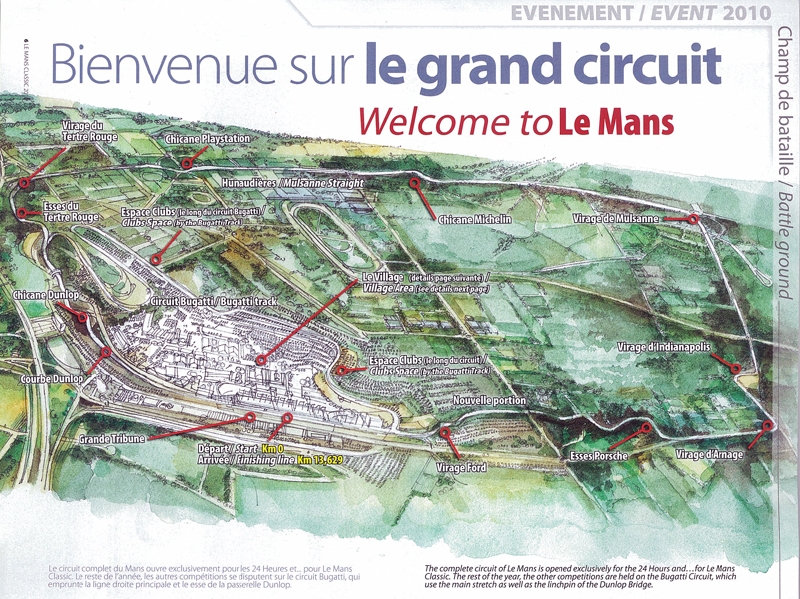 レースのレギュレーションをおさらいすると、出場車リストには1923年から79年にル・マンを走ったクルマがエントリーされる。5回目を迎えた今年は総勢468台。それを年代ごとに6つのグリッドに分け、一時間弱のデッドヒートを3回繰り返す。ひとつのグリッドの持ち時間は約1時間20分だが、その中にマシンの出入りとパレードランも含まれるため、実際は約43分の戦いとなる。サーキットの長さは一周13.629kmだ。