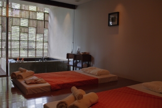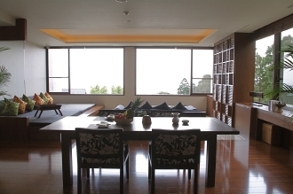 最上級のサンカラスイートは森を望むアウトバスとプライベートスパルームまで用意された究極の部屋。籠もるためだけにリザーブしてもいいほど。すべての部屋のバスアメニティにもこだわりが。シャンプーはタイの高級オーガニックコスメ「THANN」、シェービングセットは替刃型の本格的なキットを用意。歯ブラシはとうもろこしのでんぷんを利用したハンドルに、天然素材の豚毛を使用。環境への配慮が徹底されています。
