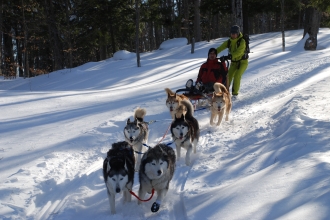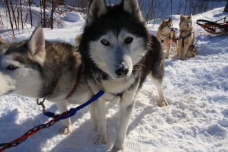 犬ゾリは、もともとカナダ先住民のイヌイットが冬の移動手段として使っていたもの。現在ではスポーツやアトラクションとして人気で、レースも頻繁に行われている。ハスキー犬やアラスカ犬など、ソリ用にトレーニングされた犬6~8頭に引かれたソリに座り、雪原を走り抜ける気分は爽快だ。またドッグチームを操縦するマッシャーにもぜひ挑戦を。