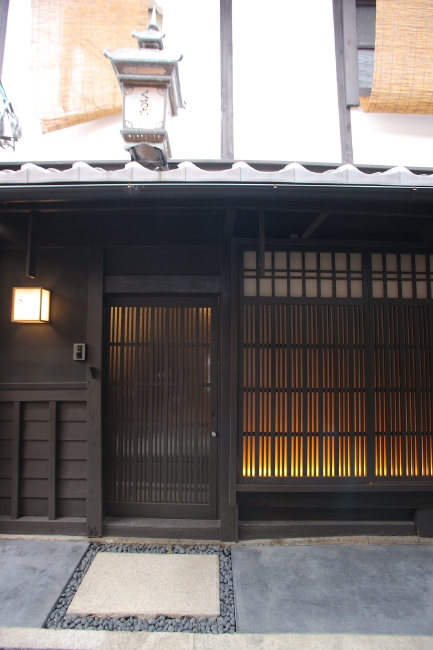 上七軒といえば、京都にある5つの花街のうち、最古の花街。夜になれば、通りをうすぼんやりした灯火が彩り、行き交う舞妓や芸妓のしとやかな姿を見ることができる町です。一つ路を折れた先に佇む格子窓も美しい外観は、静かな歴史を感じさせる町家です。