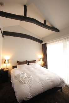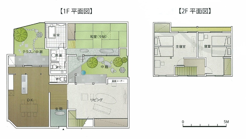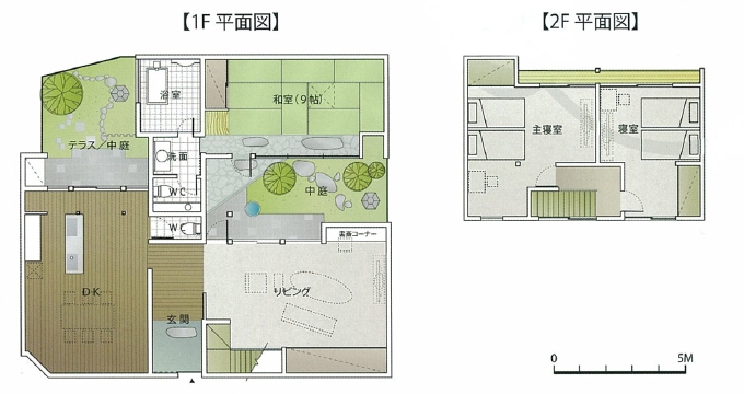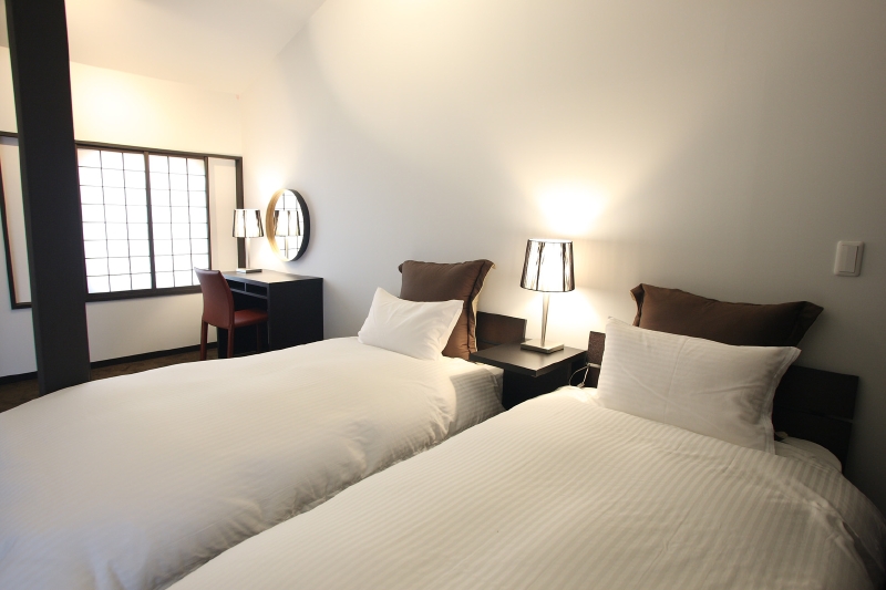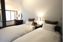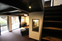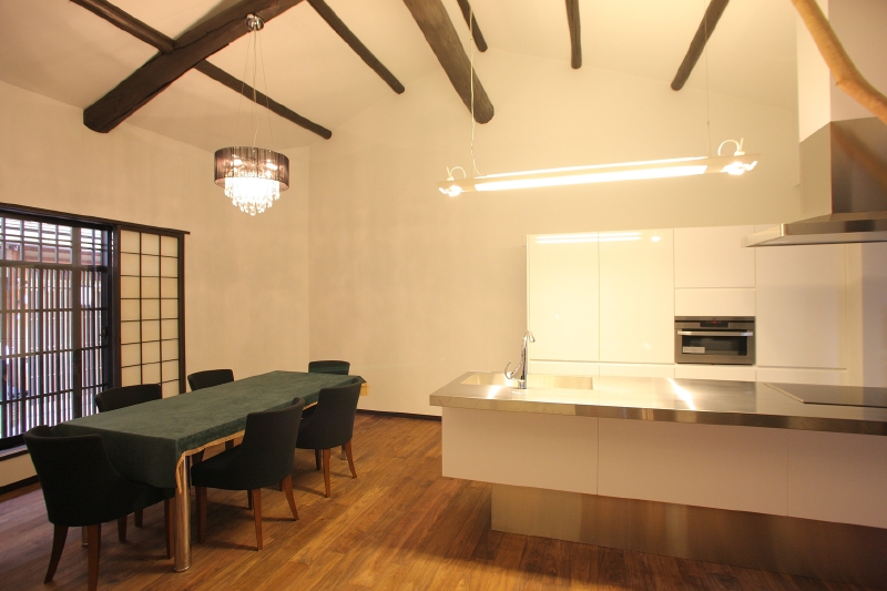 母家には、2階分の天井高のあるダイニングキッチン(アイランド式)、ゆったりしたベッドルームほか、町家をモダンにリ述べーションした快適な居住空間が広がります。