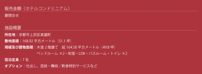 特徴はやはり、つくばいのある中庭を抜けて行く、離れ。お座敷遊びにぴったりの離れに舞妓や芸妓を呼び、近くの料亭から仕出しを頼み、友人を招いて遊ぶのもまた、京都ならではの楽しみ方。京都の旦那として、満喫してみてはいかがでしょうか。