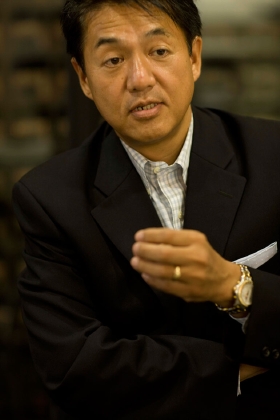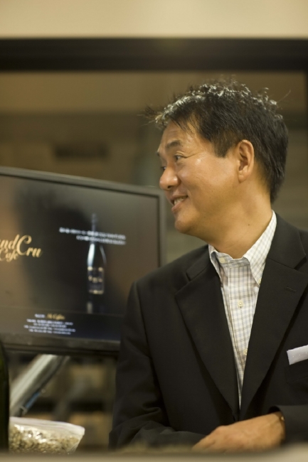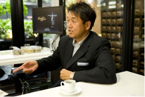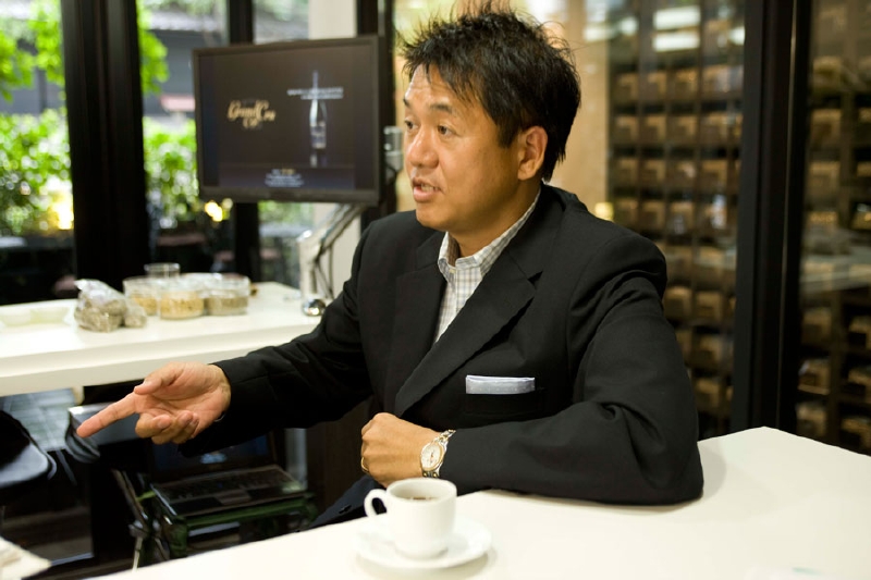 川島良彰。昨年スタートした「Grand Cru Caféグラン クリュ カフェ」の生みの親。ワインの世界に倣い、優れた農園から特に環境の良い畑を選定し、特別な条件の元にのみ育成、収穫、精選されたコーヒーを使用して、極上の特級豆を作り出す。日本で通常話題になるのは焙煎のことばかりだが、コーヒーの木の育成から始まって加工にも運搬にも保存にも「一切の妥協を排した理想のコーヒー」を実現できるのは、コーヒー一筋に生きてきた川島を除いて他にはいないだろう。