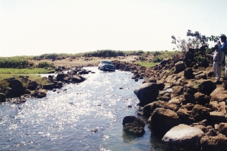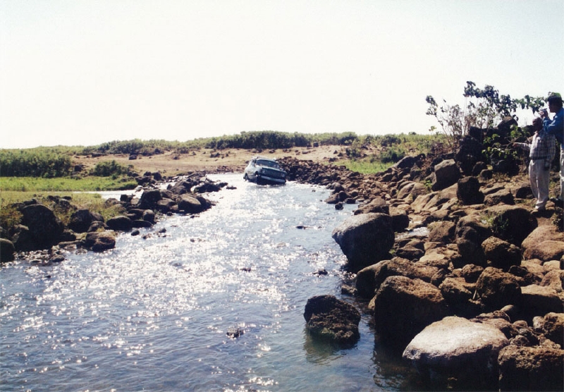 「マダガスカルではランクルに乗って幻のコーヒーを探していたんだけど、川に橋も掛っていないような場所でね、いかだに車を乗せてロープで引っ張って川を渡ったり」