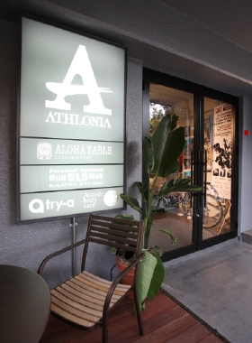 アスロニアは白戸が経営するトライアスロンショップの名であり、活動母体となる会社の名でもある。Athlon(競技)にラテン語系の「国」といった意味合いを持つ接尾語-iaを組み合わせたもの。アスリート王国といった意味合いの造語である。そして、もう一つ。アスロニアの他に白戸の肩書きである「スポーツナビゲーター」は、これもまた白戸の造語だ。