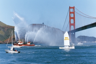 2002年、ウイスキー貯蔵樽材を再利用した「モルツ マーメイド3号」で、西宮~サンフランシスコ間の太平洋単独横断に成功。