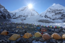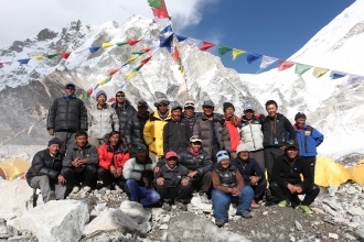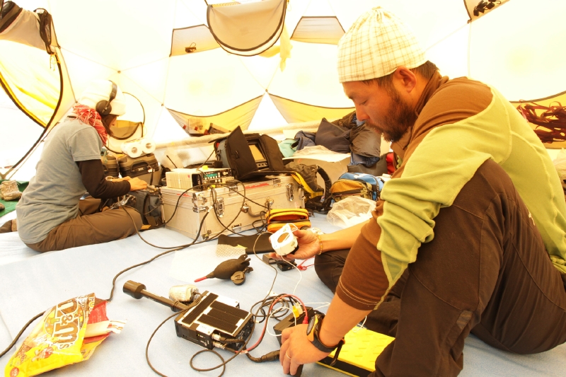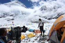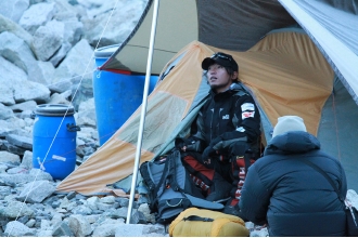 ベースキャンプ(5300m)でシェルパら「栗城隊」と。