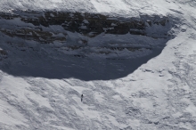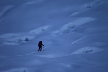 「例え頂上は無理でも、行けるところまで行きたいと。気圧の低下は決定的でしたが、それでも何が起きるかわからないのが山ではありますし。なおかつ、ちゃんと自分で帰ってこられる地点を探そうと。そして7000mを超えて行ったんですが、もう自分の左右が雪崩れちゃってて、これは危険だと自覚しました。紫外線に目をやられちゃっているし、視界は悪いしで、状況を俯瞰して見ることはできませんでしたが、足元の雪質からして、あれ以上は進めませんでした」