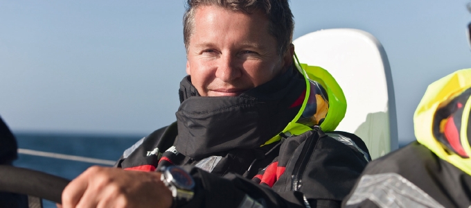 1962年9月19日生まれ、フランス出身。海洋冒険家。風力のみで海の上を“飛ぶ”セイルボート(帆船)「イドロプテール号」を開発。自らキャプテンとして冒険を続ける。「イドロプテール号」は、ヨットに水中翼を付けるという発想から生まれた。水中翼による揚力で船体が持ち上がり、波の上を飛ぶように航行する三胴船のセイルボートだ。