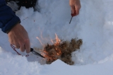 さらには冬の森で生き延びるための方法までレクチャーする。食べられる木の実やお茶にすることができる葉、逆に食べてはいけない植物などなど。秀逸なのは、ガマの穂を使ったサバイバル術。そのあたりから摘んできた穂をほぐし、綿のように広げる。これにファイアースチール(現代版の火打石)で火花を起こすと、一気に炎が燃え上がるのだ。