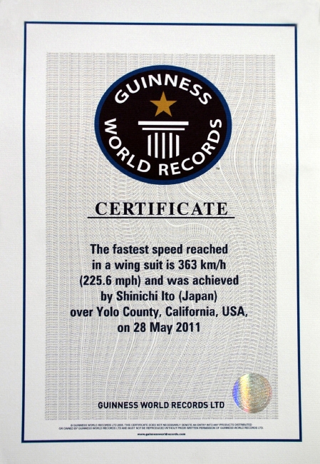 2011年5月ウイングスーツ・最高飛行速度 ギネス世界記録樹立 時速363km