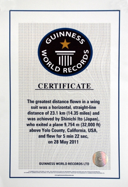 2011年5月ウイングスーツ・最長飛行距離 ギネス世界記録樹立 23.1km(自己記録更新)