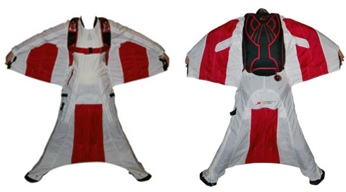 ウイングスーツは、現在フィンランド、アメリカ、フランス、クロアチアなどで生産されている。これはフィンランドのBIRDMAN社が開発した、世界初のオールランド ウイングスーツ。ウインドトンネルで実験され、最大限のハイパフォーマンスを実現。ウイングスーツフライの入門者から中級者に最適なモデル。前後にエアーインレットがあり、バックフライも可能。ウイングスーツ自体は風をまったく通さない作りになっている。サイズはS,ME,M,L,XLから選択。 カラーは1色のみ。写真左がスーツ表。
