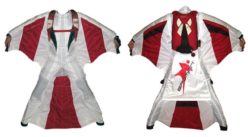 BIRDMAN社が10年の歳月をかけて開発した、BLADEの新型改良バージョン。伊藤氏の御用達仕様にもなっている、上級者向けの最新のハイパフォーマンスウイングスーツ。CAD(コンピューター アシステット デザイン)ウイングを持ち、最大限のハイパフォーマンスを実現。前後にエアーインレットを採用。幅広い飛行スピードと滑空率をもつウイングスーツ。 サイズはカスタムメイドのみ 。カラーもオーダーフォームから選択。 写真左がスーツ表。