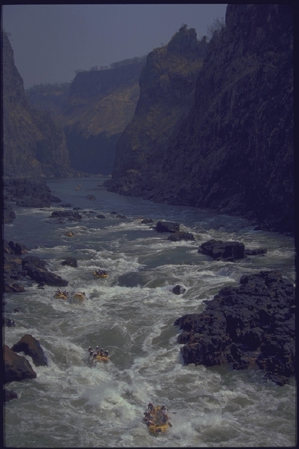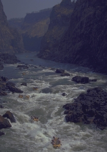 「アフリカでラフティングをしていたという仲間の家でザンベジ川の様子をビデオで見た瞬間、衝撃が走ったんです。こんな川があるのかと……。とにかくそのスケールの大きさに驚きました。それからアフリカに渡り、ザンベジ川で約1ヶ月を過ごしたんです。改めて人間の世界がちっぽけに見えるほど自然界の大きさに圧倒されました。まるで津波のような波のたつザンベジ川。しかもその波の高さは7メートル以上にもなる。なにより驚いたのはその中を遡ってラフティングする選手たちの姿を見たことでした。5年間もラフティングをやってきたのでそこそこ自信もあったけれど、所詮、目的は安全に下ることに過ぎなかった。