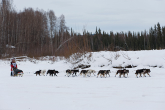 走破する、世界最長の犬ぞりレース。優勝者でも2週間前後の日数を必要とし、マッシャーと犬の健康管理から8時間と24時間の連続した休養を各一回ずつとることがルールで決められている。毎年3月の第一土曜日がスタートとなるため、この大会が春の到来を感じる地元の人は少なくない。