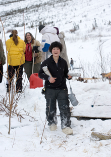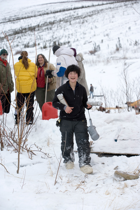 本多はイエローナイフ発のバスに乗り込み、ユーコンクエストが開催されている都市を目ざす。その途中で訪れたドーソンシティで、大会ボランティアを募集しているとの情報をキャッチする。レースのチェックポイントでテントの設営や薪割りといった仕事をしながら、マッシャーに食事を提供したりするという。
