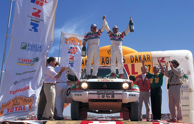 篠塚の名前が再びマスメディアに登場したのは1987年のことだ。日本ではあまり知られていないスポーツを日本に紹介していこうという方針のNHKが、アメリカズカップ、ツール・ド・フランスとともにパリ~ダカールラリーをフィーチャーし、総合3位の篠塚をも大きくクローズアップしたのだ。その効果は絶大だった。それまで月に200台しか売れていなかったパジェロは、なんと10倍の2000台売れるようになっていた。これは、モータースポーツの活躍が直接的な原因となってクルマが売れた日本で最初の事例になった。
