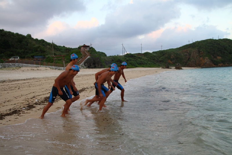 そして、一緒に台湾まで黒潮を越えてくれる泳者を募った。当初は、一人で泳ぎ切ることも考えたが、失敗が許されないので、成功の可能性を上げるため、あえてリレ-方式を選択した。条件は、海で20kmを5時間半で泳げること。20名ほどが手を挙げたが、合格者は被災地である相馬市出身の中央大学の水泳部の学生含む、自衛隊や消防士、ライフセ-バ-ら計6名だった。