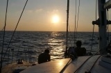 純粋な人間の力にこだわり、浮力を得られるオーシャンスイムのウエットス-ツは着用せず、あえて水着だけで泳いだ。クラゲに刺されたり、シャ-クフィ-ルドに触れてビリビリ来たが我慢した。海水温度が高いので、30分泳いで船に上がると脱水症状のようになり、水を毎回1リットルも飲んだ。6名は1mでも台湾に近付くべく、海面を必死で漕いだのだ。
