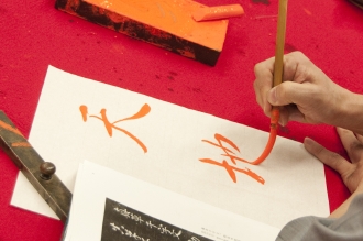 「墨をすることによって、その香りを楽しみ、心を鎮めることができます。それから書と向き合うことが大切なのです」