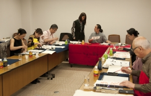 墨アーティストROGENの異名をもつ海老原露巌が直接指導を行うセミプライベートな書道教室「書巌の会」を毎月4、5回のペースで開催中。 仕事などの都合に合わせて日程調整も可能なので、会社経営者、政界財界、芸能界からの参加者も多く在籍している。体験指導も行っているので、ご興味のある方は、ぜひ!