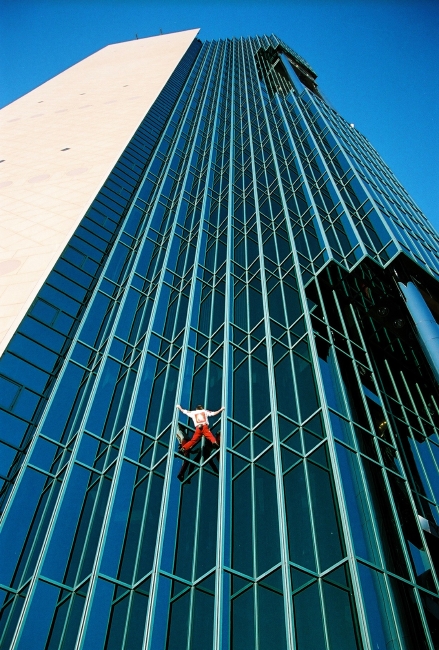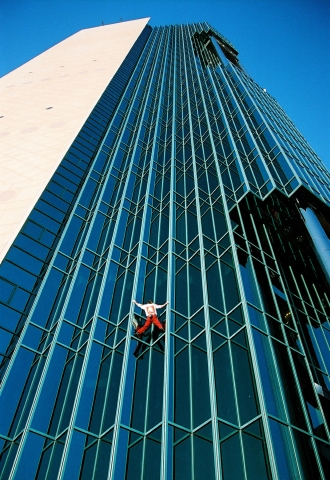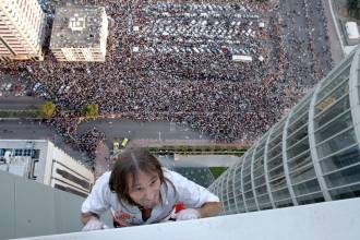 しかし、これまで世界各国の高層建築物に命綱なしで登ってきた、「フランスのスパイダーマン」だったら、どうだろうか。あるいは、許可なし、予告なしで登 ることも多いため、ときに警察に捕らえられることもある、文字通り、「世界中を騒がせてきた男」だったら、どうだろうか。きっと多くの人が、VTRや写真 で一度は目にしたことがあるに違いない。身もすくむような高層ビルの壁面を、自らの手と足だけを駆使してよじ登っていく彼の姿を。