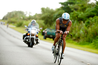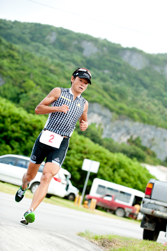2012年、太平洋の北マリアナ諸島のロタ島で毎年行われる「ロタブルートライアスロン」に出場する白戸。
