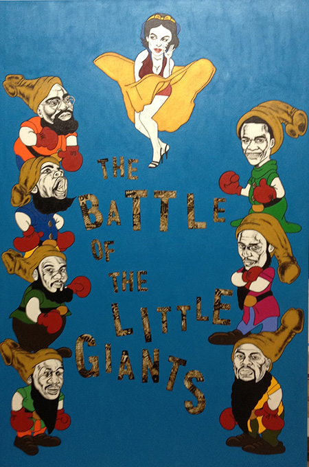 「最初に個展の話をもらったときも、過去の経歴は出したくないという気持ちが正直あったんです。そのことで薄っぺらく見られるのも分かっているし、やる以上はそれとは関係ないところで勝負してみたいっていう気持ちもありましたから。でも、こうやって描いているうちに、あえて隠すのもカッコつけになるし、気にする必要はないんじゃないかな、と。実際、自分が経験してきたことが自己表現として表われる。絵でもそうですし、自分が話すことも、やっぱりボクシングで例えることが多いんですよね」