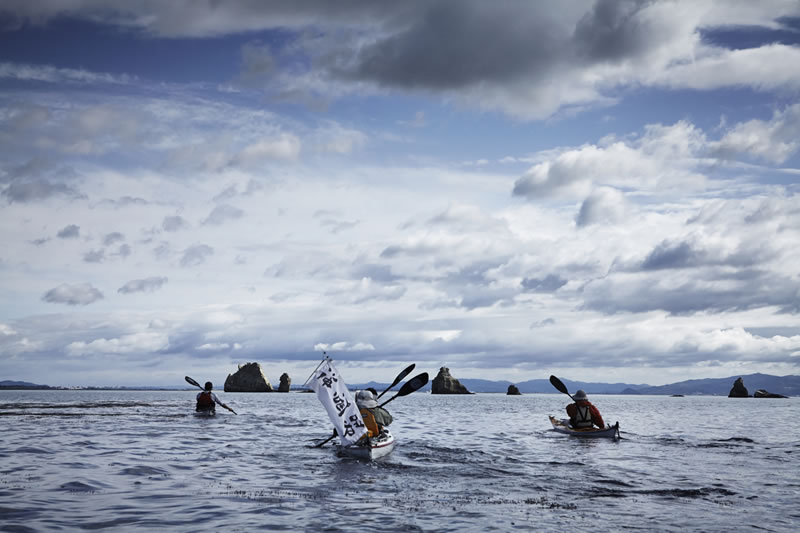 そうして始まったのが『海遍路』という活動だ。シーカヤックを2−3艘連ね、普段海と関わりがない人たちを乗せ、むき出しの海で生きる人々の暮らしを訪ね歩く。八幡に共感した学者たちや、カメラマン、ときには高校生も加わることもある。