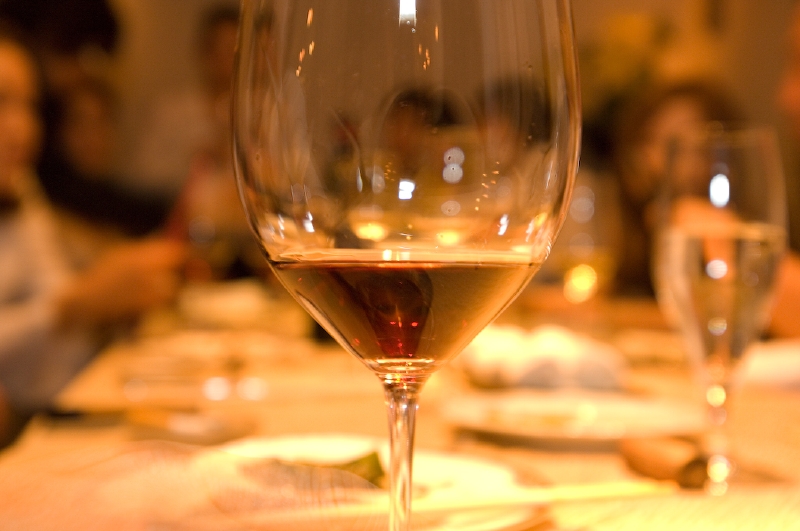 ラフィットは、松原さんにより、細心の注意を払って慎重に―あまりにゆっくりなので「腕が保たない!」と悲鳴を上げたほど―10杯のワイングラスに注がれ ました(デキャンタージュはしないと事前に相談して決めていたので)。香りをかぎ、色を見るFaustたち。褐色がかった深いルビー色とでも言いましょう か。