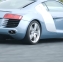 車名 R8 4.2 FSI quattro 車両本体価格1670万円 (2007年7月現在)、全長4431×全幅1904×全高1,249 mm、総排気量4163cc、エンジン 水冷V型8気筒DOHC、最高出力[ネット] 309kW(420ps)/7,800rpm、最大トルク[ネット] 430Nm(-kgm)/5,500rpm、駆動方式 クワトロ(フルタイム4WD)、ミッション R トロニック