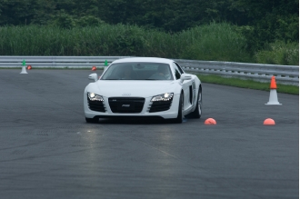 まず、ジムカーナコースへシャトルバスで移動。ベテランインストラクターに指導を受け、R8に搭乗し、急加速、急ブレーキを体験するプログラムです。