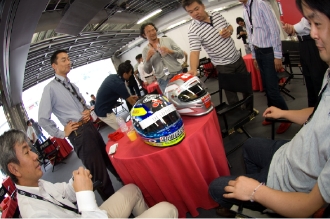 富士スピードウエイのピット上階にあるバンケットルームに、Faustたちは11時の集合時間に遅れることなく、きっちりと集まってきました。平日というのに、クルマのこととなるととっても純粋な彼らです。