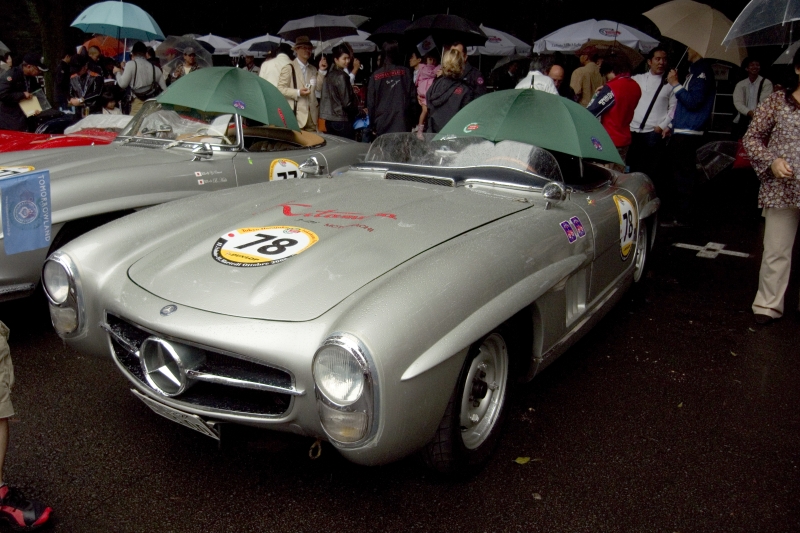 糸を引くような秋の霧雨が神宮の森を濡らしています。いとおしく磨き上げられた宝石のようなクルマたちのボディが、かえっていっそう艶かしく輝いています。