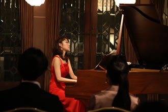ファウストたちの前で挨拶をした彼女は、やや緊張の面持ちでピアノの前に腰を下ろした。