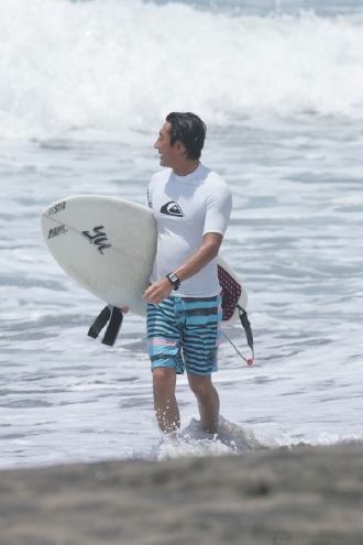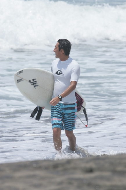 仕事以外は、サ-フィンがライフスタイルの中心だ。車もスポ-ツタイプの車の他にもう1台、サ-フィンのために大きなワゴン車を買った。行く時は「トリロジ-」というDVDを流し、その音楽を聞いてテンションを高めていく。車の中には、常用しているY. Uの6'0""、さらに6'5"、7'5"のボ-ド3本が入っている。波の状況は毎日、携帯サイトでチェックする。都会のド真ん中にいても波の状況が気になって仕方がない。プロではないが、サ-フィンへの姿勢は極めて真摯だ。